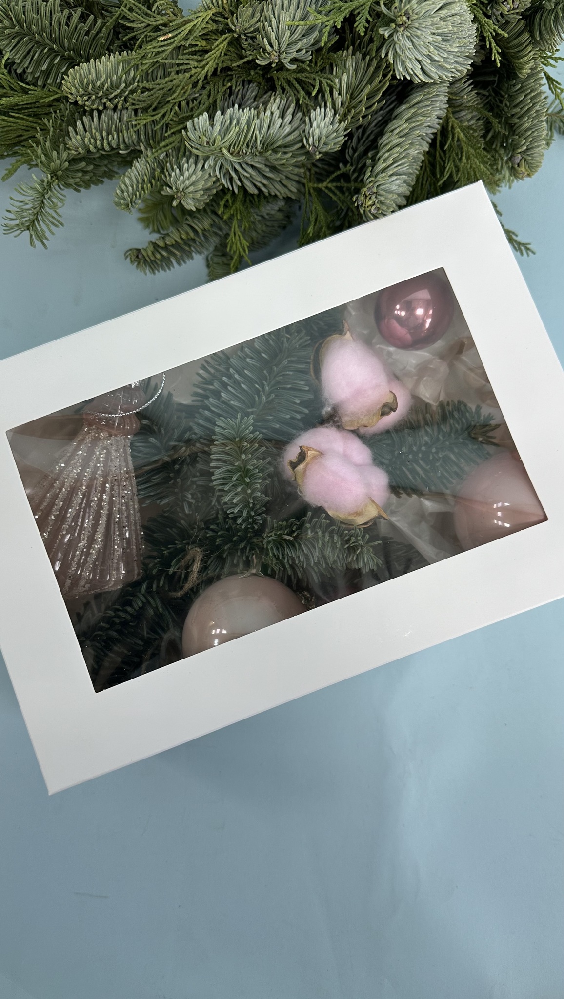 Стеклянные игрушки и букет #69 – купить за 1 900 ₽ | Салон цветов FLEUR